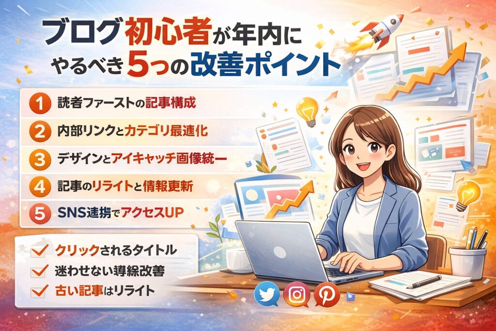 しかし、悩み続けるだけではブログは前に進みません。改善ポイントを明確にし、1つずつ対処することこそが、初心者を脱却する最短ルートです。