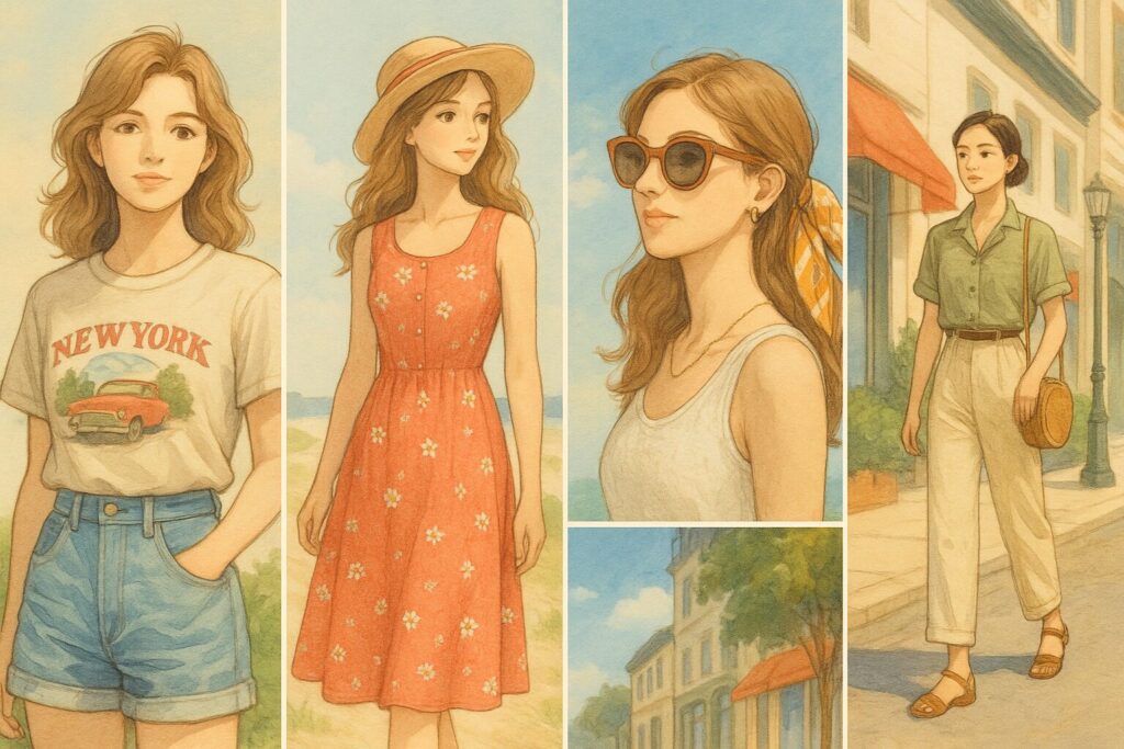 Vintage tees are the foundation of any summer wardrobe. Their lived-in fabric and unique graphics make them versatile for countless outfits. Pair an oversized band tee with biker shorts for an easy weekend look, or tuck a shrunken retro tee into a flowy skirt for a playful twist. Another trend is layering: wear a vintage tee under a slip dress or over a bikini top when heading to the beach. These small styling choices create a look that feels effortless yet intentional.