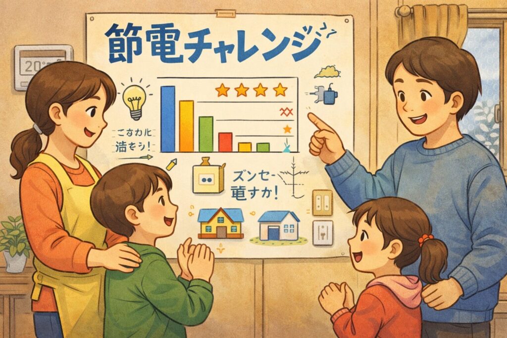 「テレビのつけっぱなしゼロチャレンジ」や「節電ポイントを貯めてご褒美」など、遊びの要素を取り入れると、
