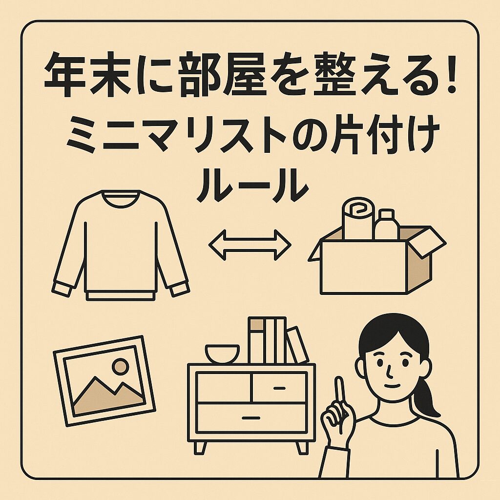 年末は一年分のモノが溜まって判断が鈍りがちですが、ミニマリストの視点を取り入れるだけで、不要な判断を減らし、効率よく片付けができます。