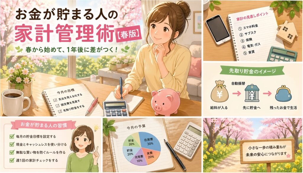 家計管理は「早く始めた人が有利」です。特に春は年度のスタートでもあり、ここで習慣化できるかどうかが1年後の貯金額に大きく影響します。
