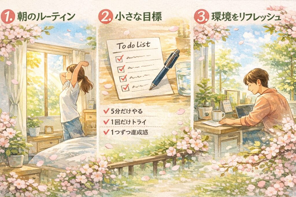 この記事では、誰でも今日から実践できる「モチベーションを維持する春の習慣3選」をわかりやすく紹介します!