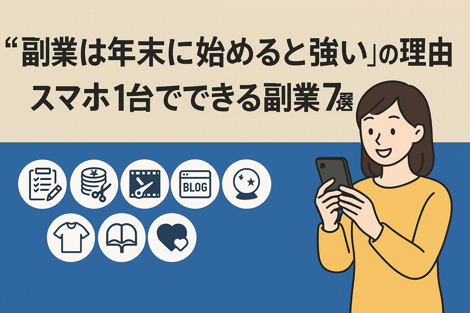 導入文 「副業を始めたい」と思いながらも、気づいたら1年が過ぎてしまった…。そんな経験、ありませんか? 実は、スマホだけで始められる副業は “年末からのスタートがもっとも成功しやすい” という傾向があります。理由は3つあります。 年末は消費が活発...