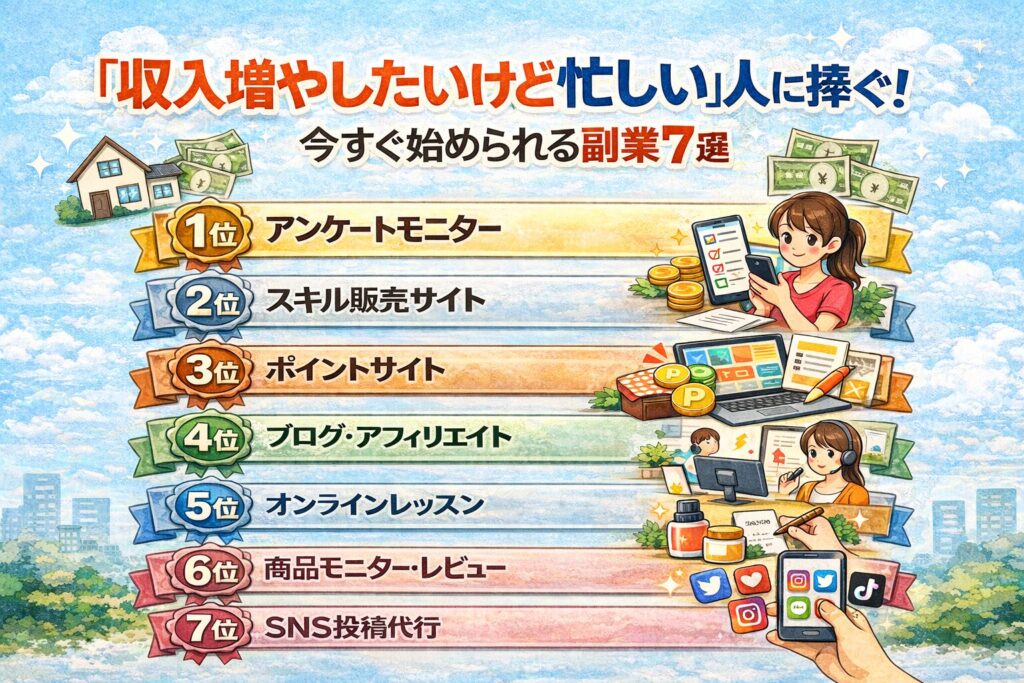 「収入増やしたいけど忙しい」人に捧ぐ!今すぐ始められる副業7選