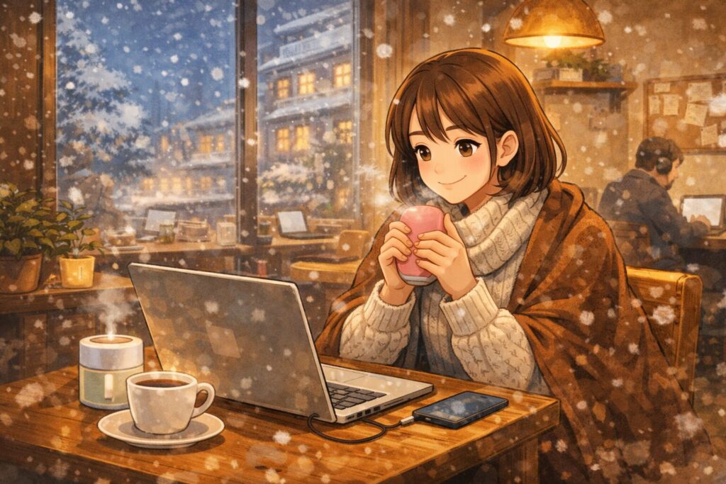 その対策として注目されているのが、「防寒に配慮されたカフェ」です。暖房が効いていて、ブランケットやヒーターが完備されている空間は、冬の作業場所として理想的。特に、静かで落ち着いた雰囲気のカフェは、集中力アップにも一役買ってくれます。